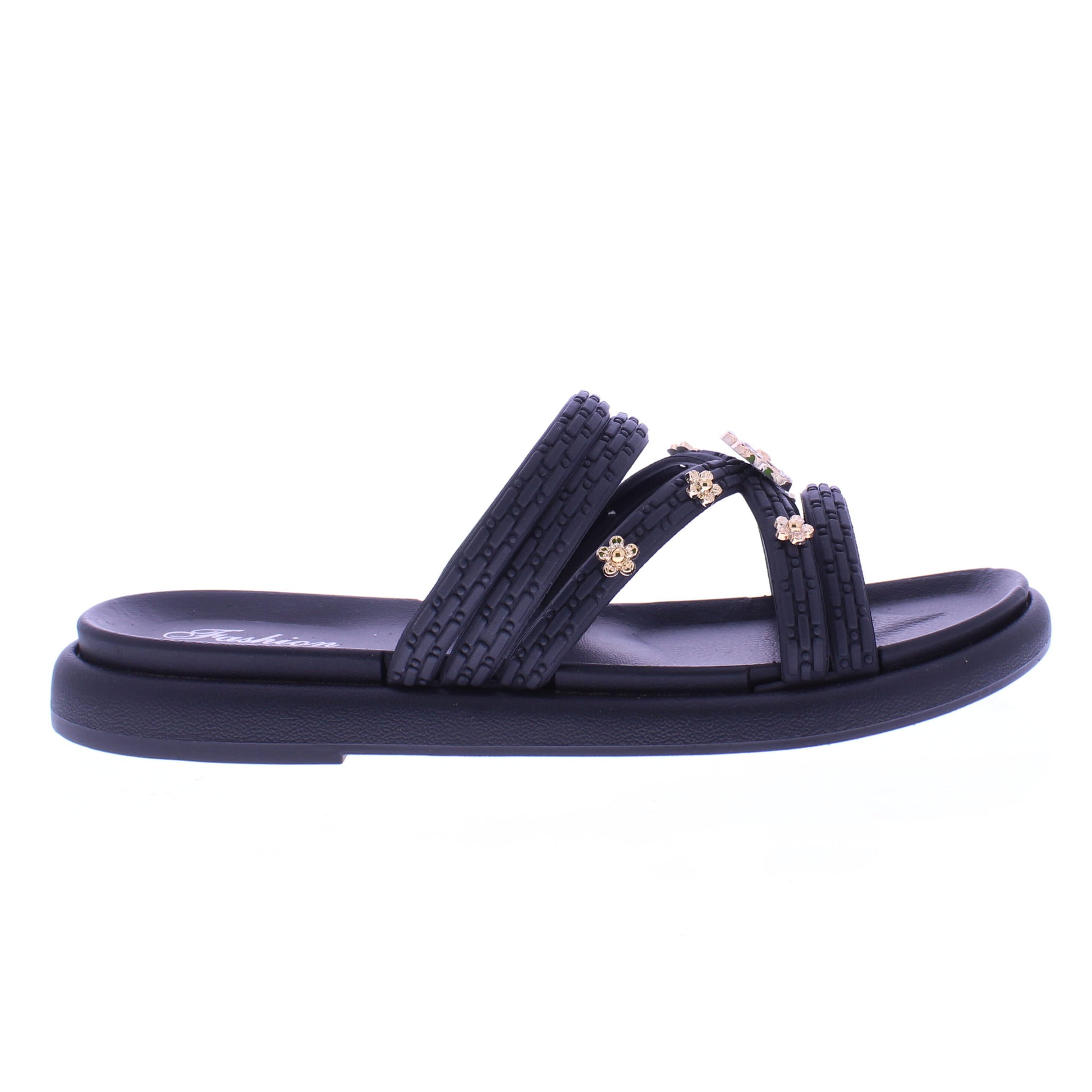 $5.00Women Slide with Gold Flower Studs