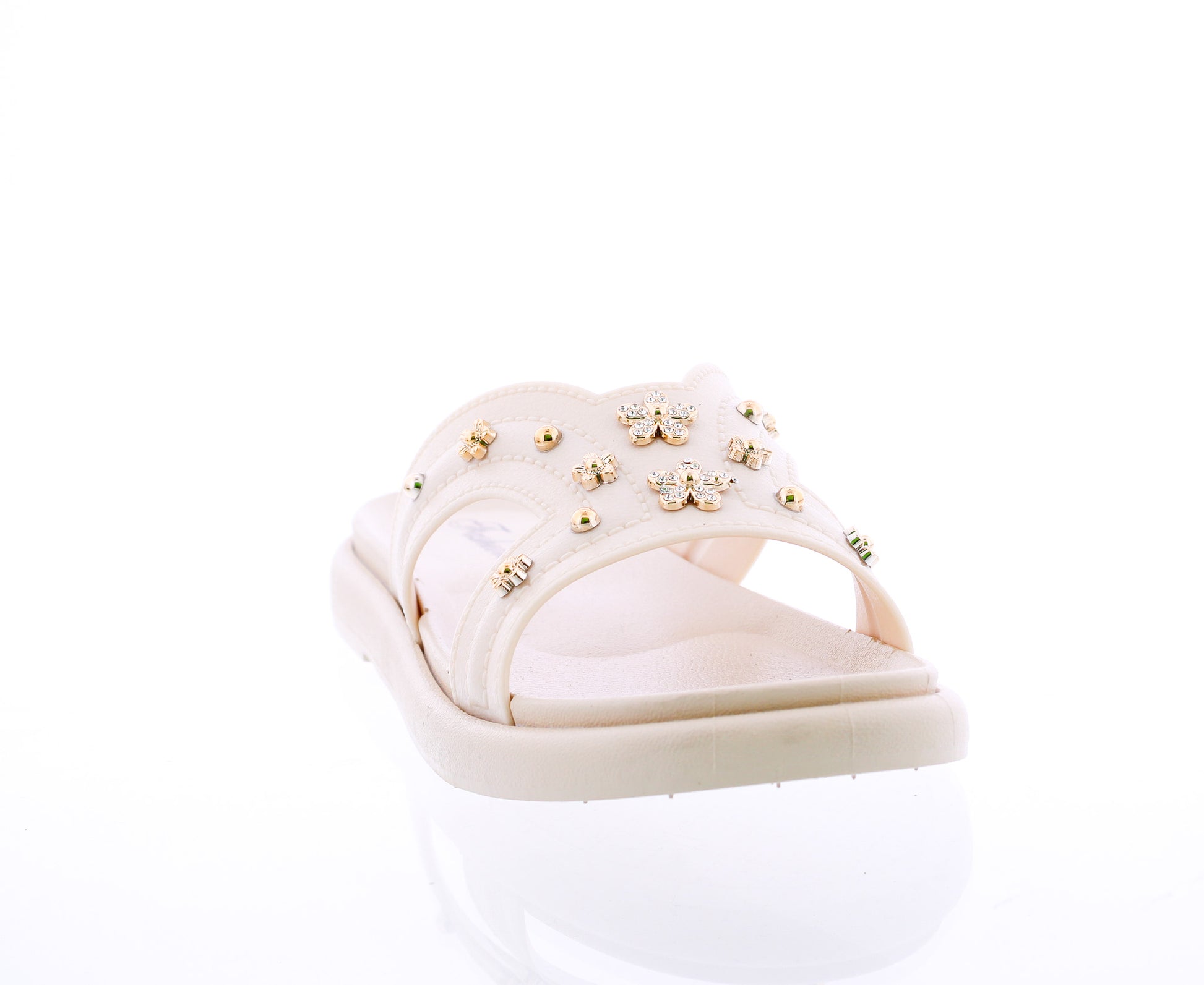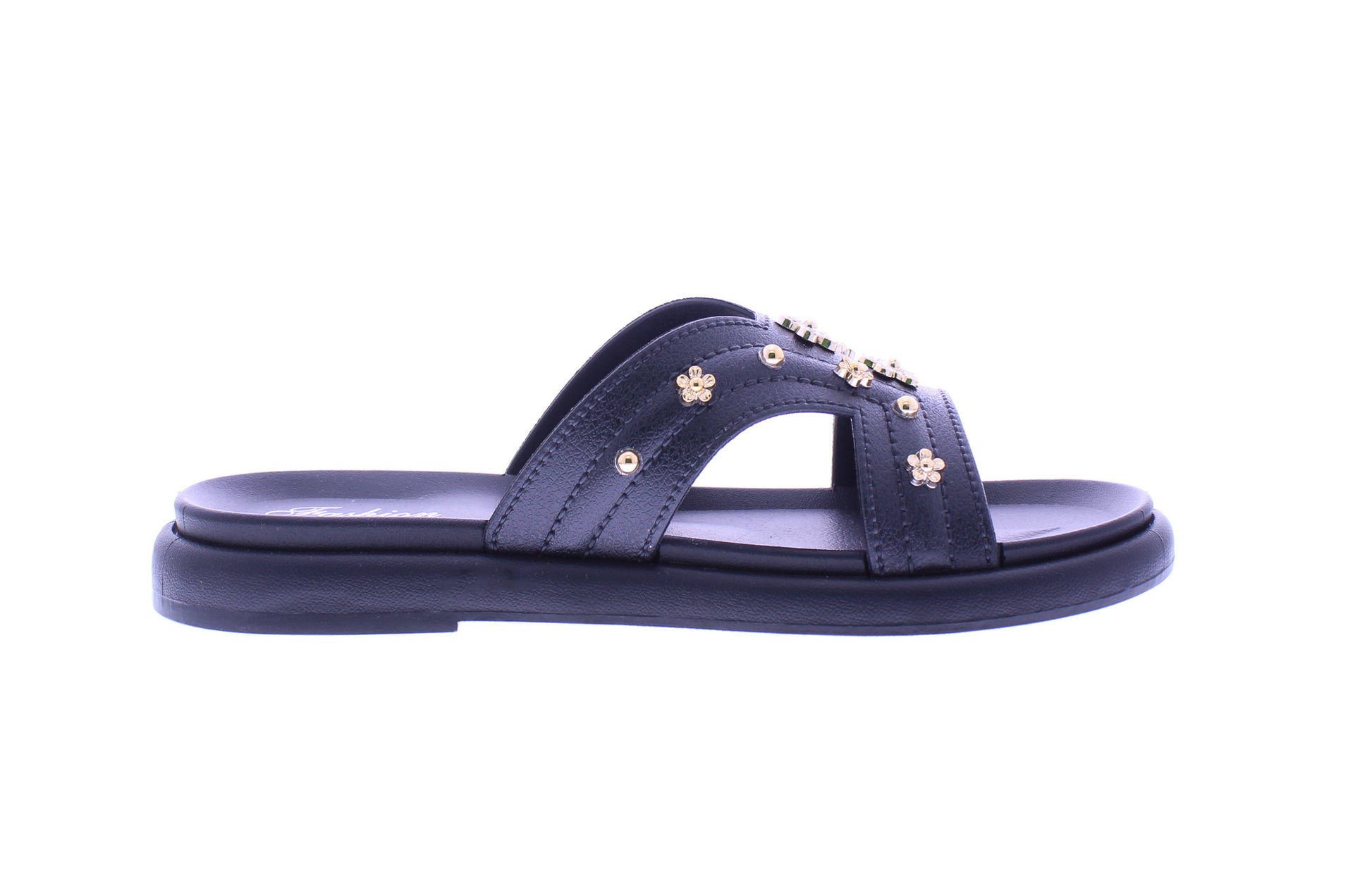 Women Slide with Gold Flower Studs